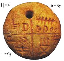 jele/betűje, de megvan az alsótatárlakai korongon, megvan Glozelben és az Égei