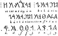 Nikolsburgi rovásábécé: Kr. u. 1483. Telegdi János Rudimentája: Kr. u. 1598. Az